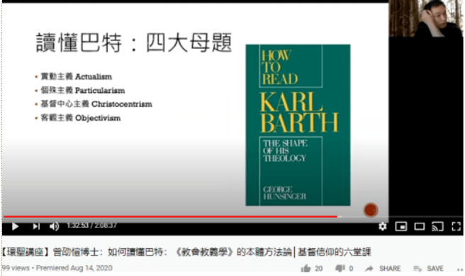 当然,范泰尔有可能误解巴特,但是,正如钟马田的书评里所指出的,范泰尔对巴特的批判“引用了其他作者的许许多多的言论作为支持,最终的效果是非常确定的。光是这点,它就彻底清除了那些指责范泰尔的批判是奇特的说法。” 所以,范泰尔的批判并不是只根据他自己对巴特的诠释,而是有其他作者的言论作为支持和根据。 2020年8月,曾邵愷还做了一个约2小时的《如何读懂巴特的讲座》,下面是视频的截图: