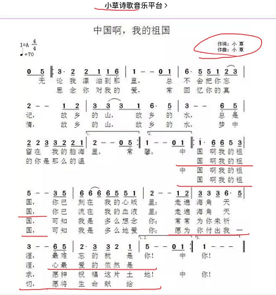 再看一首《小草诗歌》里的《中国啊,我的祖国》,截图如下: