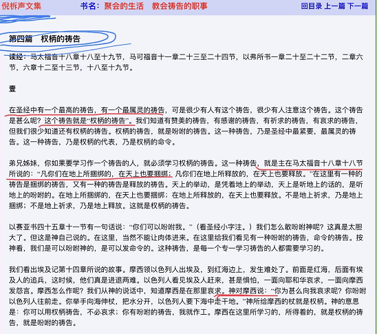 下面是倪柝声的《权柄的祷告》部分原文截图,是上面视频右上角她所讲的要点的来源: