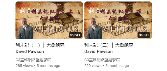 陈泳洁现在搞出了《C3靈修網路聖經學院》(C3灵修网络圣经学院),在Youtube 上有相应的频道,主要的都是陈泳洁自己出持的节目,但其中也转了几个大衛鮑森 David Pawson的视频,见下面截图: