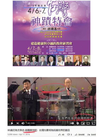 下图是2016年赵镛基到台湾办特会的海报和视频截图,据报当时有上万人到场,可见他在台湾也深受欢迎和被热捧。