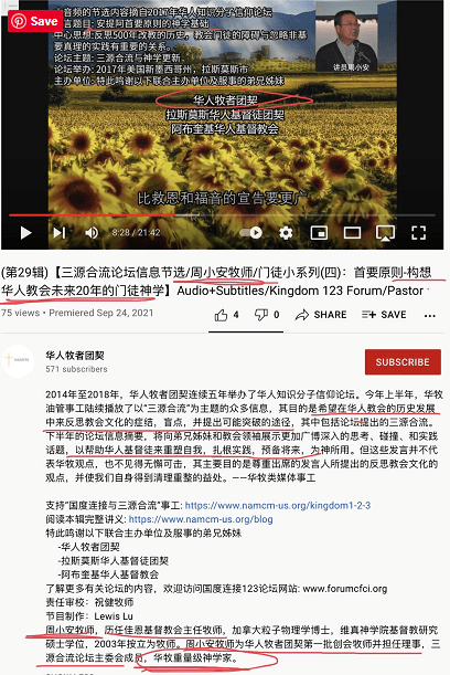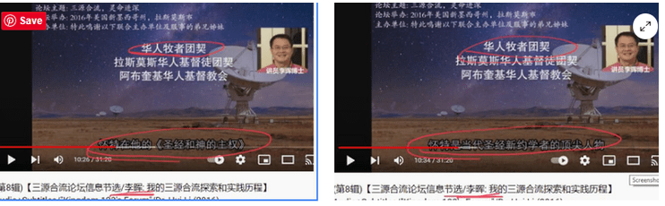 华牧里的灵恩派代表人物就是被称为“华牧重量级神学家”的周小安,见下面周小安的“三源合流”视频截图: