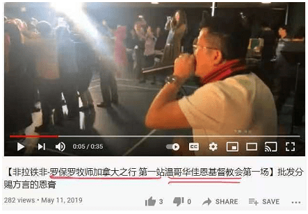 武汉的灵恩派异端分子罗保罗2019年到加拿大时,第一个接待他的就是周小安的“佳恩基督教会”,下面是视频截图: