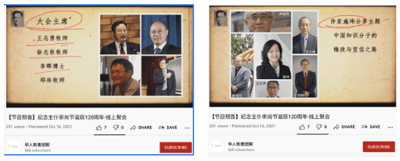 《纪念主仆宋尚节诞辰120周年大会》的主要讲员还有:戴继宗,徐志秋,施玮,张伯笠等人,见下面华牧所制的视频截图: