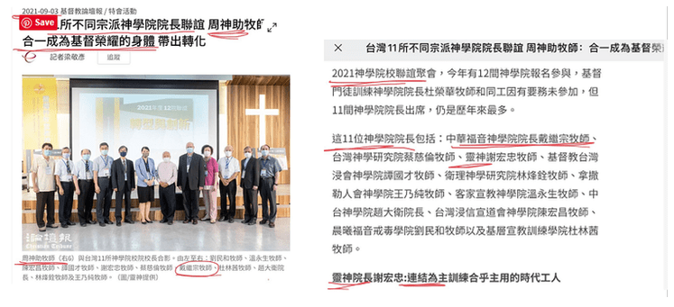 戴继宗(戴德生的第五代孙)是现任华神的院长,但是,他与灵恩派的台北灵粮堂都走到一起去了,可参阅《台湾基督教界的乱象:灵恩派和假师傅的入侵,不讲真理的合一》,下面是报道截图: