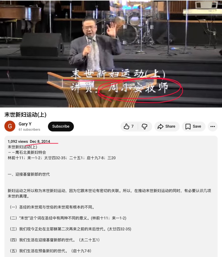 最后再次指出,周小安是华人牧者团契的主要成员之一,华人牧者团契在2020年10月份主办“纪念宋尚节诞辰120周年”。华牧里面的主要成员还有:祝健,王志勇,徐志秋,张伯笠,施玮,李晖。能与周小安这样的人团契和同工,也是危险人士!具体的可参阅《华人牧者团契(王志勇,张伯笠,周小安,徐志秋,祝健)信仰的混杂乱》。
