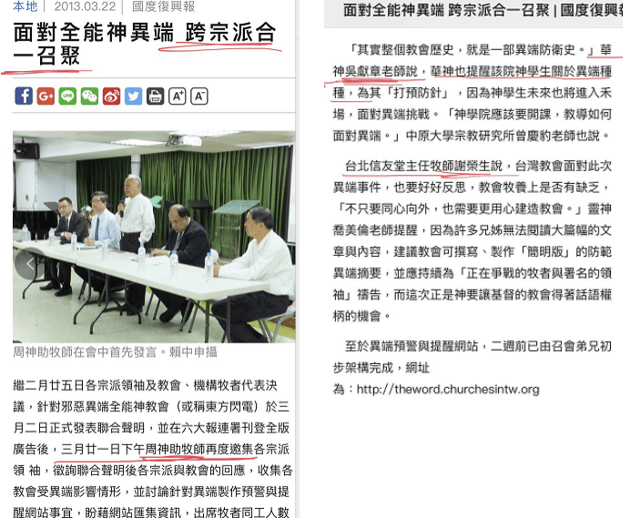 寇绍恩和周神助等人还为异端召会正名和站台,看下面2014年的报道截图: