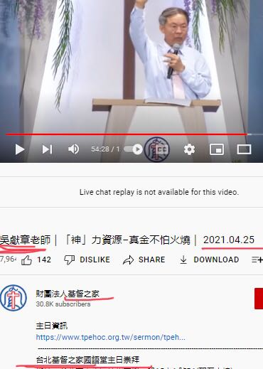 2021年4月,吴献章站在了寇绍恩的台北基督之家的讲台上,见下面截频图。