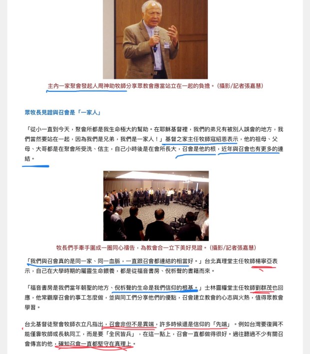 一旦与灵粮堂合一了,能去的地方就多了。寇绍恩称周神助是他的“属灵父亲”,他说,「我的爸爸寇世遠監督及周神助牧師都是我的屬靈父親」(引自《周神助寇紹恩牧師同台談屬靈父子 為父的心帶出安慰與療癒》,见下面原文截图)所以,寇绍恩在本质上也是灵粮堂的一分子,与灵粮堂没什么多大的不同,吴献章会站在台北的基督之家的讲台上也就是很自然的事了。