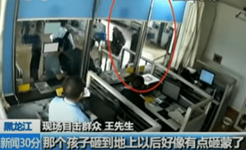 下面就是徐纯合抓起自己6岁的小孩,砸向执法人员的录像截图: