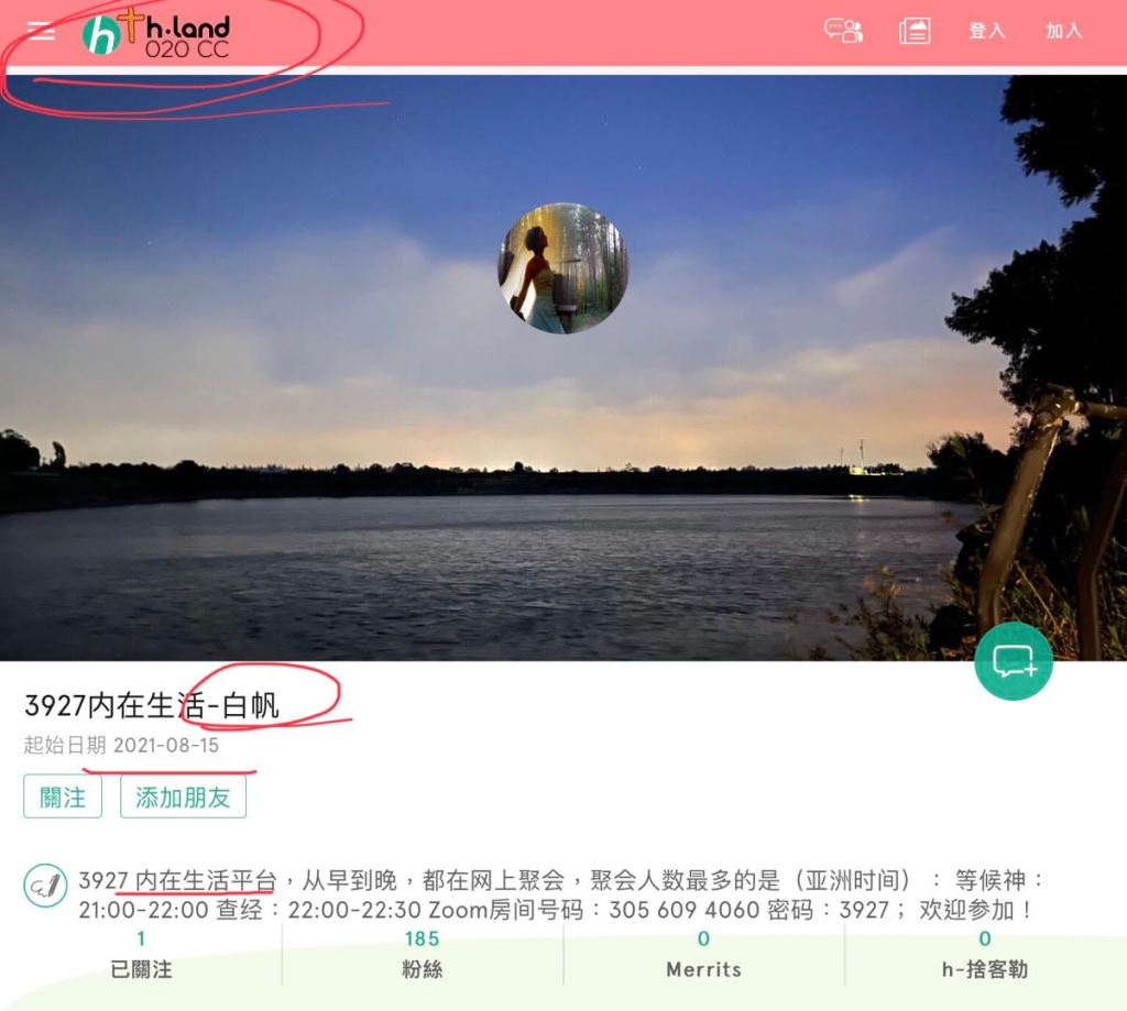 在上图的右边栏目可见,她自己说,“由于本站储存空间有限,等候神聚会录音都上载到 H.Land ” 所以,H.Land 已为这位异端的传播者白帆提供了半年(2021.08 – 2022.02)的储存和传播的平台。