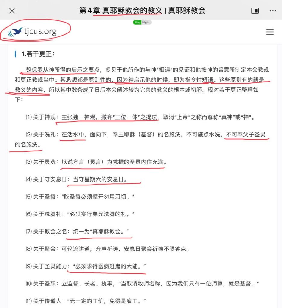 上图所示第一条:(1)关于神观: 主张独一神观,撇弃“三位一体”之提法。 这就赤裸裸地否定了三位一体的教义。