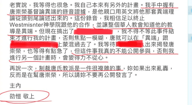 下面是2013年,曾劭愷(Shao Kai Tseng)发给某人谈论唐崇荣是异端的电邮。我只截取其中一部分,有些内容就隐去不发出来了。曾邵愷也是贼喊抓贼,他自己一边热捧和传播巴特这位异端人士,一边还急着要把唐崇荣当作异端抓出来。