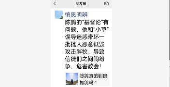 3。龚燕君(微信名:慎思明辨),自称是“担负当今时代的护教打假”,见下图: