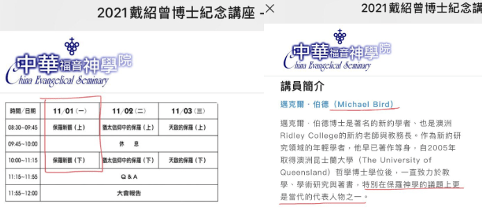 2021年11月1日-3日,华神举办的戴绍曾纪念讲座所请的讲员是 Michael Bird(伯德),见下面截图: