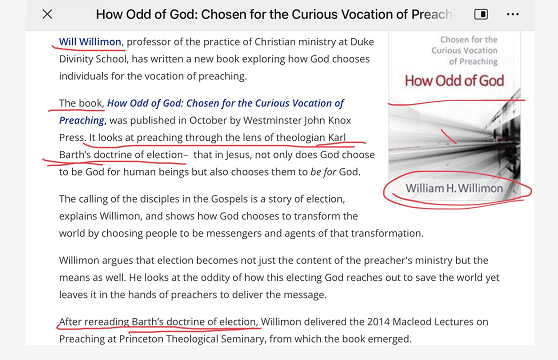 其实,在自由派的神学院里是自由派,这一点都不奇怪,也没什么特别的。但魏利蒙的特别之处是,他简直就是卡尔.巴特(Karl Barth)在当代的喉舌。2006年,魏利蒙出版了一本书,叫着《Conversations with Barth on Preaching 》(与巴特谈讲道),截图如下: