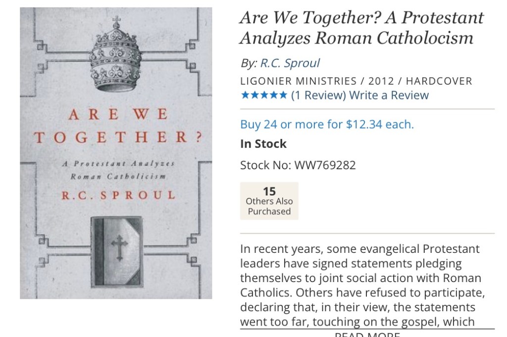 今年是宗教改革500周年,每年的10-31是宗教改革纪念日,今年的纪念日也就是宗教改革500年的纪念日。新教和天主教的分裂已长达500年,最近几年来,不断有呼吁天主教与新教合一的声音,也有人认为新教与天主教并没有本质的分歧,不该分裂,应当合一。对于这个问题,2012年,作为美国当代著名的神学家、神学院教授、和牧师的 R.C.Sproul(史普罗)出版了一本书《Are We Together ? A Protestant Analyzes Roman Catholicism 》(我们在一起了吗?一位新教徒分析罗马天主教),如下图所示。