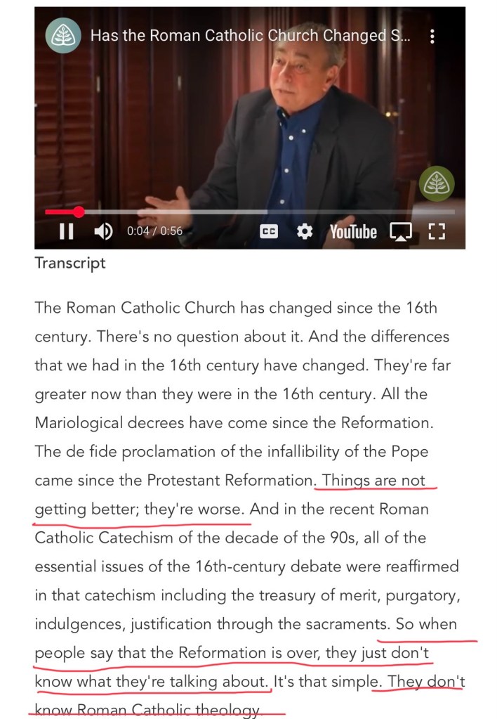2019年,林格尼儿网站发表了史普罗牧师的一个视频《Has the Roman Catholic Church Changed Since the 16th Century?》(自16世纪以来,罗马天主教改变了吗?》 史普罗指出,