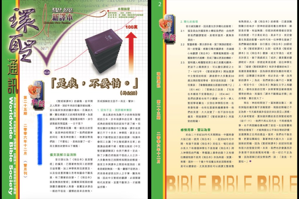 「《圣经新译本》的销售,从早期乏人问津,到近年来印量突破50万,并以极快速脚步迈向一百万的大关,实在感谢天父的鸿恩和厚爱。为甚么过去举步维艰,发展慢如蜗牛,如今却竟能突飞猛进,一日千里?」