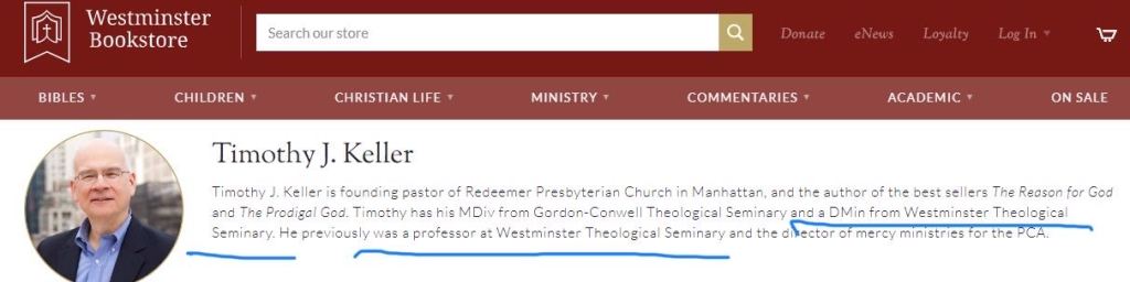 在这个介绍里说到,凯勒拥有西敏的神学博士学位,还曾经是西敏神学院的教授。