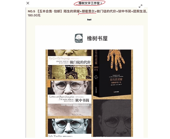 橡树热推数本朋霍费尔(也译为:潘霍华)的书籍,以及朋霍费尔的传记。