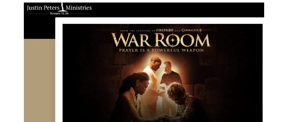 译注2015年,美国发行了一部以基督教为体裁的电影,叫着《战争房间》(War Room),曾经在基督教界里风靡了一阵。后来,也不时有人把这当作基督教电影来推荐。但这部电影却混杂了不少与圣经真理不相符合的错误,是极危险和误导人的。美国护教人士 Justin Peters 在2015年就对这部电影写了影评,指出了这部电影里所含的错误和危险。文章比较长,在此只作节译。