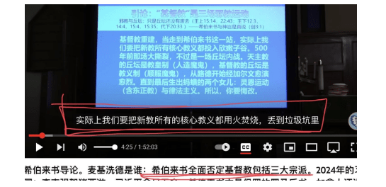 实际上,就算他自己不与基督教分手,就凭他说,“要把新教的所有核心教义都用火焚烧,丢到垃圾坑里”(见下面截屏),他也不会是基督教的一分子,而是基督教的仇敌!