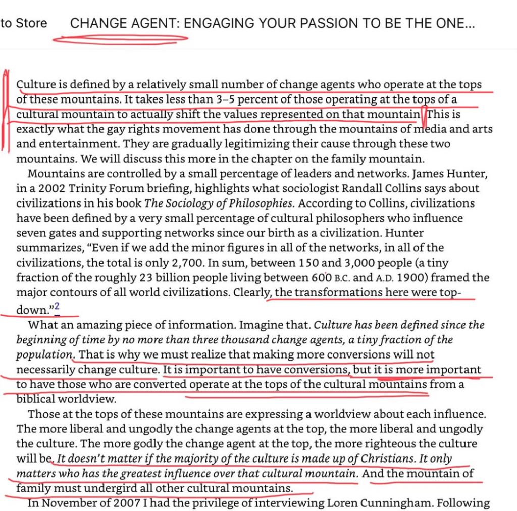 所以,“七山策略”是出自罗伦·康宁汉和白立得(Bill Bright)声称他们得到了来自神的“启示”,后来在灵恩派和NAR(新使徒改革)里被接受和大力推广。在《罗伦·康宁汉(Loren Cunningham)逝世:他曾发起数百万人的短期宣教运动》这篇报道里还说到,