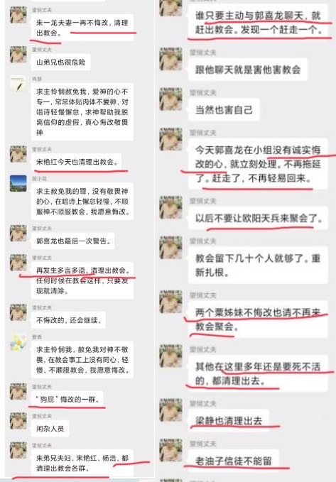 但从所看到的骆传道赶出一些人出教会的言语来看,有些好像只是因为多言多语,有些是他认为还没得救的“老油子”,有的是抱怨听不进讲道、有疑惑,还有的是他认为还没悔改的,对真理没有更深的追求,甚至连主动与某人聊天的也要被赶出教会。当然,我不知道为什么不能主动与某人聊天。