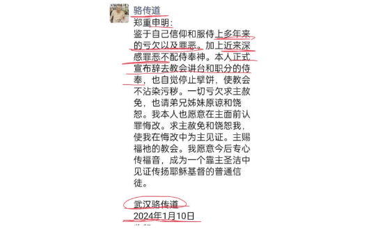 骆某长期犯淫乱和贪腐罪,已经早已透过他们自己南京路“教会”的受害者作了有力的举报和见证,更有神的仆人陈鸽弟兄和青草姐妹揭露了其罪恶对神的亵渎和对神教会的损毁。对此他自己也供认不讳,如下截图所示: