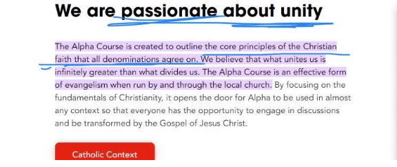 上面这段话的意思是:我们热衷于合一,启发课程旨在概述所有宗派都认同的基督教信仰核心原则。我们相信,使我们合一共同点是远远大于导致分裂的不同之处