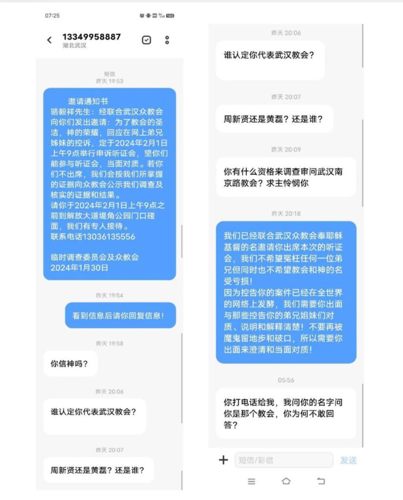 指控人联合向武汉众教会牧者发出公开信,邀请大家参加他们指控骆毅祥犯罪的听证会。众教会回应于 2024 年 2 月 1 日举行听证会。
