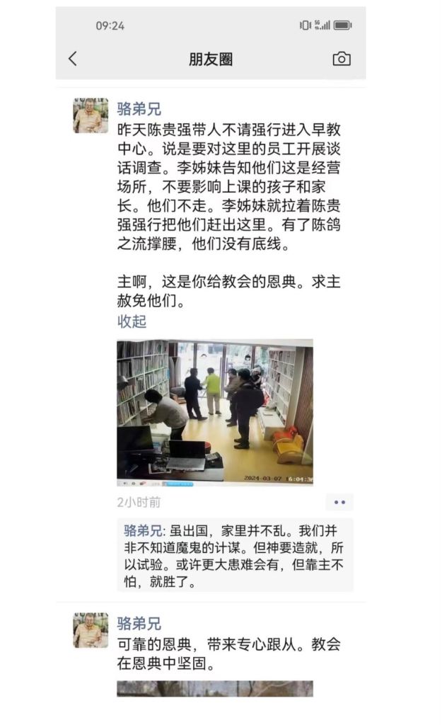 骆毅祥在微信中图文并茂,对此事作出不当反应,曲解牧师们前往早教中心的意图。