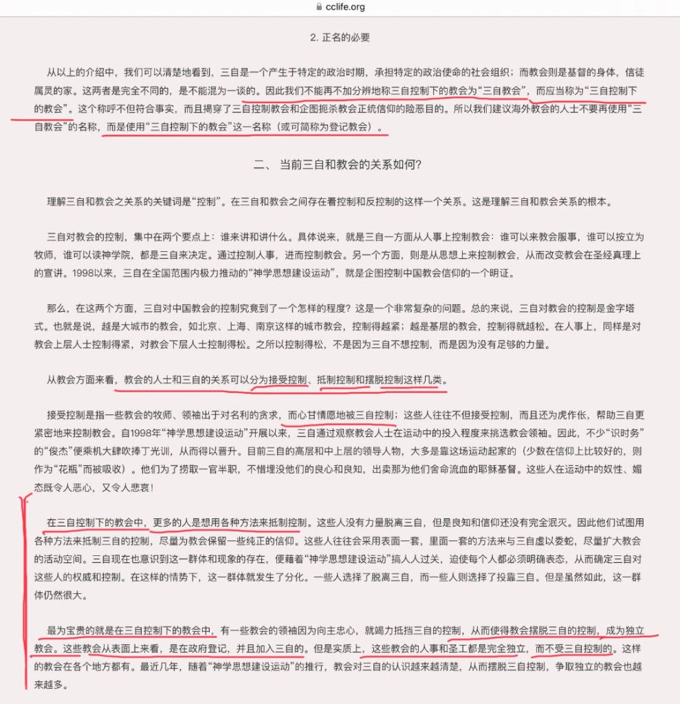 也就是说,这篇文章的作者,反对把所有在政府登记的教会都等同于三自,而是再分出一类,称之为“三自控制下的教会”,或“独立教会”。