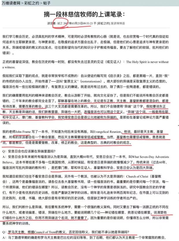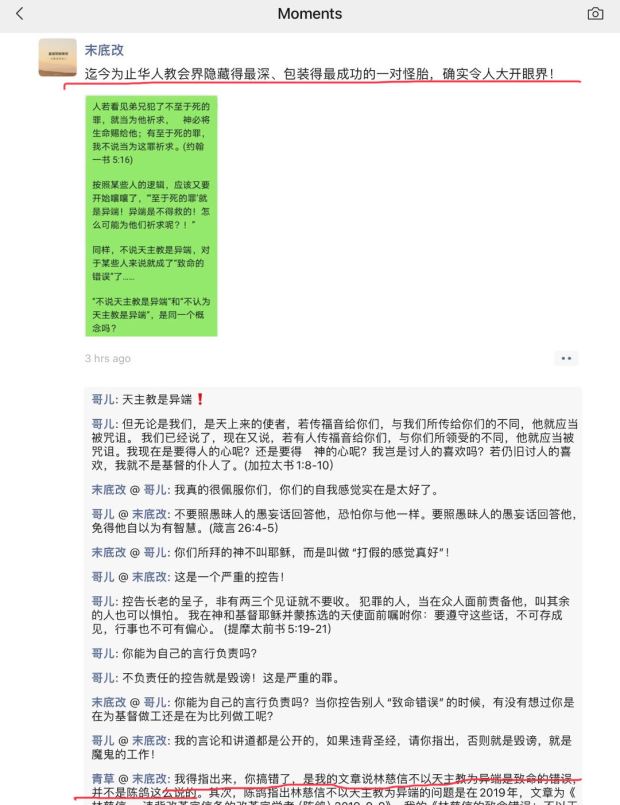 在这篇文章里,我就已经说了林慈信的不以天主教为异端,就是致命和严重的问题,这并不是我最近才这么说的,而是五年前就这么说了,当时黄强是支持和点赞的。