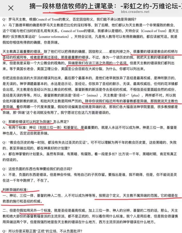 林慈信真的没有说天主教不是异端吗?林慈信在回答该不该看天主教是异端的问题时说: