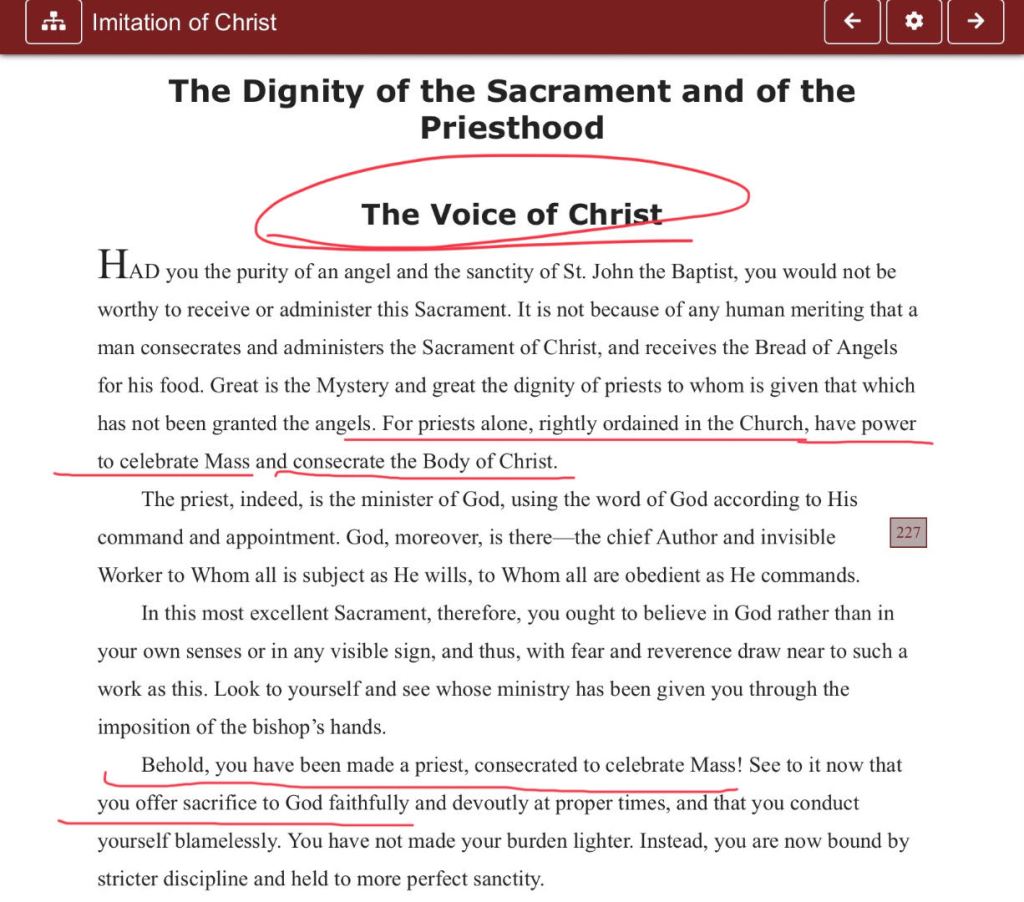 卷四,第五章《The Dignity of the Sacrament and of the Priesthood》(圣餐和神甫的尊贵)的原文截图如下: