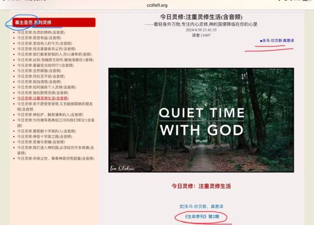 附图:生命季刊《尊主圣范》系列灵修专栏截图