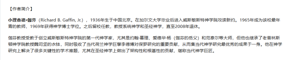 作者:小理查德.伽芬(Richard B. Gaffin, Jr.) 译者:小草