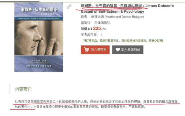 到了上个世纪的80年代,才有基督徒参与和推动在家教育,主要代表人士是詹姆斯·杜布森(James Clayton Dobson,1936年 – )。詹姆斯·杜布森是儿童心理学家,美国当代的在家教育受他的影响很大。但他所宣扬的理念里混进了许多不符合圣经的世俗心理学的东西。1998年,在美国出版了一本书就是在指出詹姆斯·杜布森的错误教导和危险。书名为《James Dobson’s Gospel of Self-Esteem & Psychology》(詹姆斯·杜布森的自尊和心理学的福音)这本书的中译本图示如下: