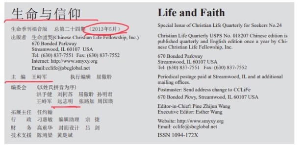 一直到了2013年5月,远志明还是季刊的《生命与信仰》的编委会成员,看下面截图: