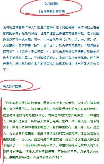 季刊首次公开指出远志明神学上的错误是在2015年3月《生命季刊》第73期里,发表了闻则信所写的《没有听过福音的“好人”能进天堂吗?》。此文虽然是在指出远志明的错误,但文章里却没有清楚指出所批判的那段话是远志明说的,而是说,“有人这样回答”。下面是原文相关部分截图: