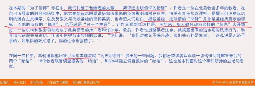 前几天(2025年5月14日)我发表的《证明:生命季刊撒谎,毁谤陈鸽,背后插刀!(小草)》一文,是根据事实来证明季刊所声称的,“在揭露远的道德败坏之前,就一直在以各种形式批判远的神学错误 ”是个谎言。本文将要查考,2015年1月远志明丑闻曝光后,季刊究竟有多少批远志明神学错误的文章?
