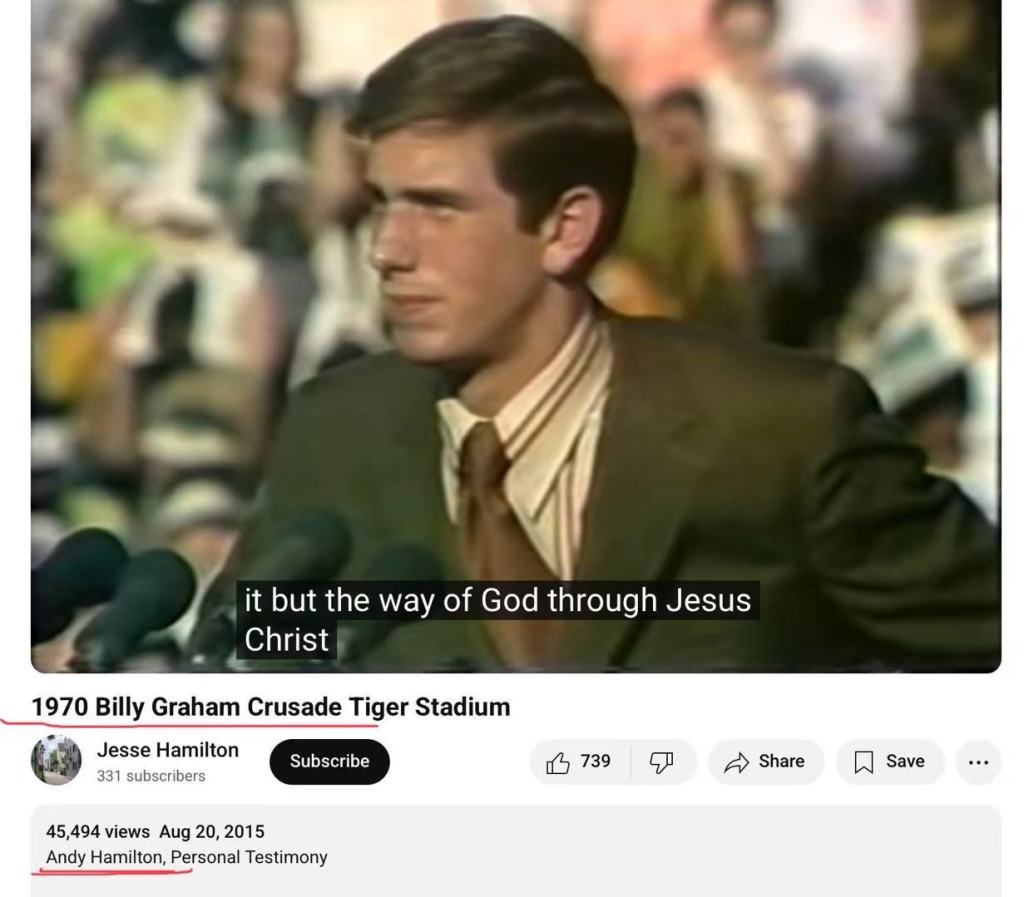 — 上面资料引译自维基百科《Andy Hamilton (American football)》 和《Billy Graham’s lasting Louisiana legacy》
