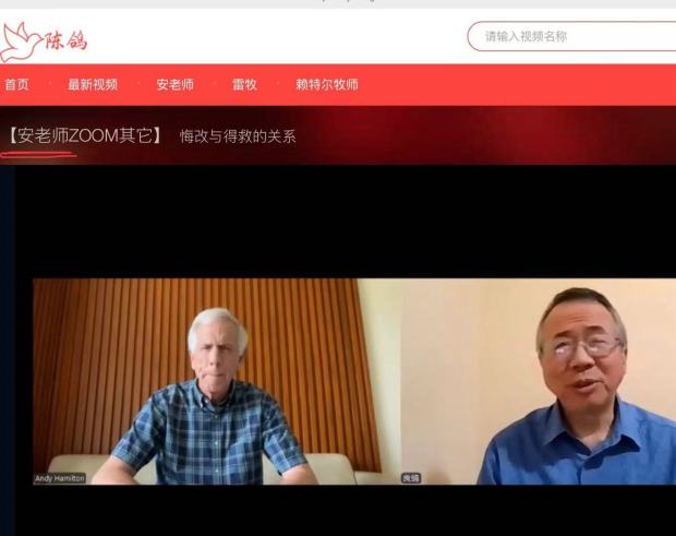 安老师今年75岁了,每周在良鸽 Zoom 上有两次的神学培训,陈鸽老师实时翻译。安老师的信仰纯正,对基督教的教义有系统和详细的讲解。欢迎大家来上安老师的课,也来听陈鸽老师每个主日的释经讲道。下面是安老师讲课,陈鸽老师翻译的《悔改与得救的关系》视频截图: