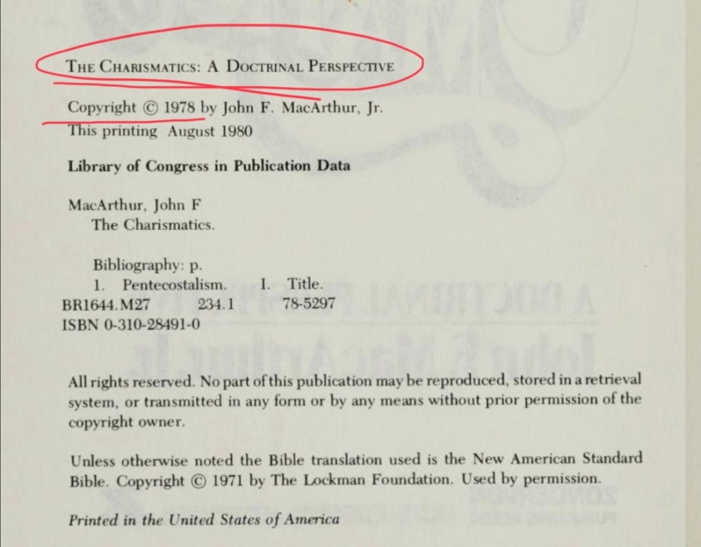 唐崇荣是何时才开始批判灵恩派的?无从考究。他自己说是1982年被按立为牧师的,那么就算他1982年就开始批判灵恩派,麦克阿瑟牧师对灵恩派的批判比唐崇荣还早。1978年麦克阿瑟就出版了批判灵恩派的书《The Charismatic: A Doctrinal Perspective》,1983 年赵中辉就把这本书翻译出版了,书名为《从神学观点看灵恩派》。看文后所附这本书的中英版出版时间。