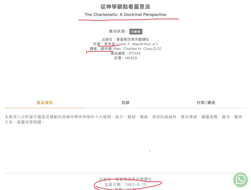 附图:麦克阿瑟牧师的《从神学观点看灵恩派》中英版出版时间截图