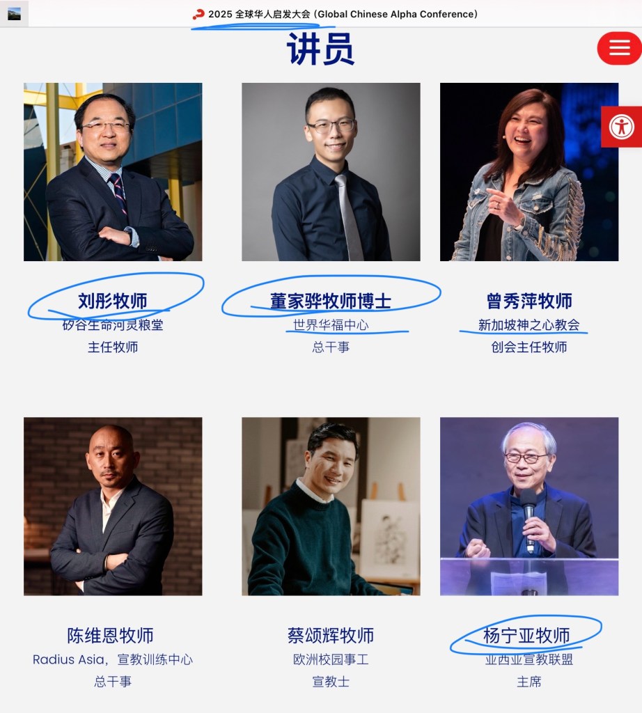 2025年3月召开了全球华人启发大会,为了一个启发课程也值得开全球大会? 所以说,这都只是幌子,目的都是在推进宗教大合一。看看大会的讲员(截图如下),首位就是刘彤,灵恩派头目,Empower 21 的成员。第二位 董家华,华福总干事,也是个宗教大合一人士,参阅《灵粮堂/周神助,天主教,中华福音神学院/戴继宗,基督之家/寇绍恩,华福/董家骅,长老会的大混杂》和《世界华人福音运动50年,成了大混杂运动!远避华福!》。蔡颂辉就是华人启发系列节目的主讲人。