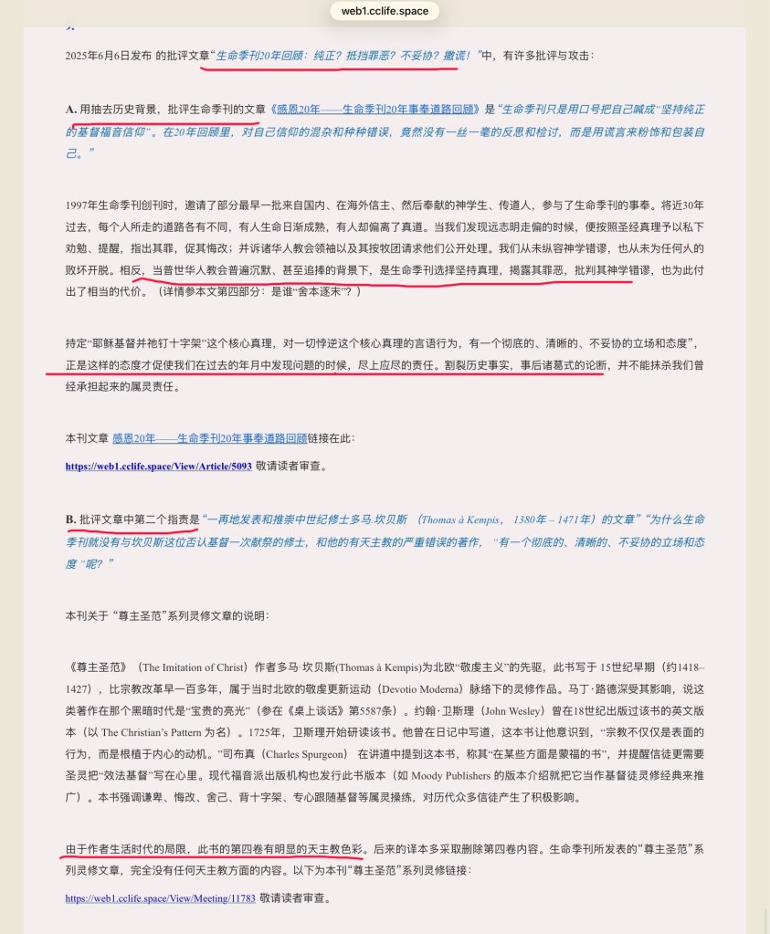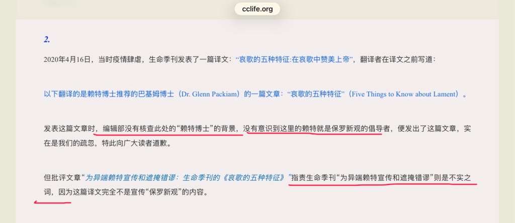 季刊说我的《为异端赖特宣传和遮掩错谬:生命季刊的《哀歌的五种特征》》一文,对他们的指责不实。截图如下: