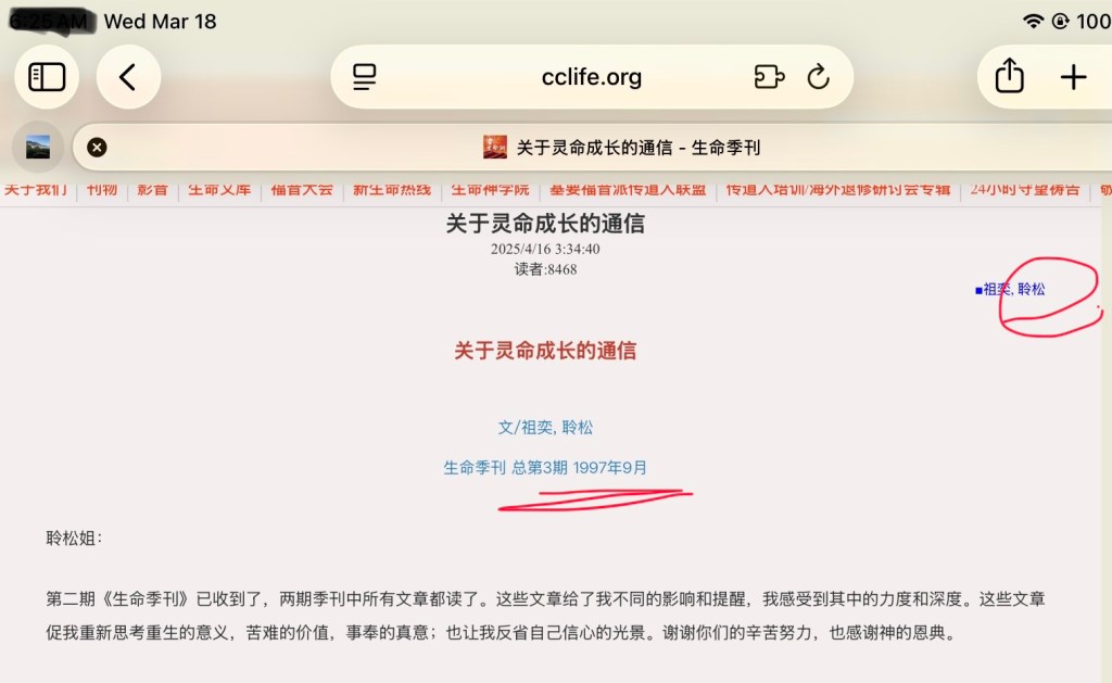 季刊对盖恩夫人的推崇从1997年屈儆聆发表的这篇《关于灵命成长的通信》开始,到今天已经近三十年了,文章依然在季刊的网站上,至今还不公开认错、悔改、道歉!